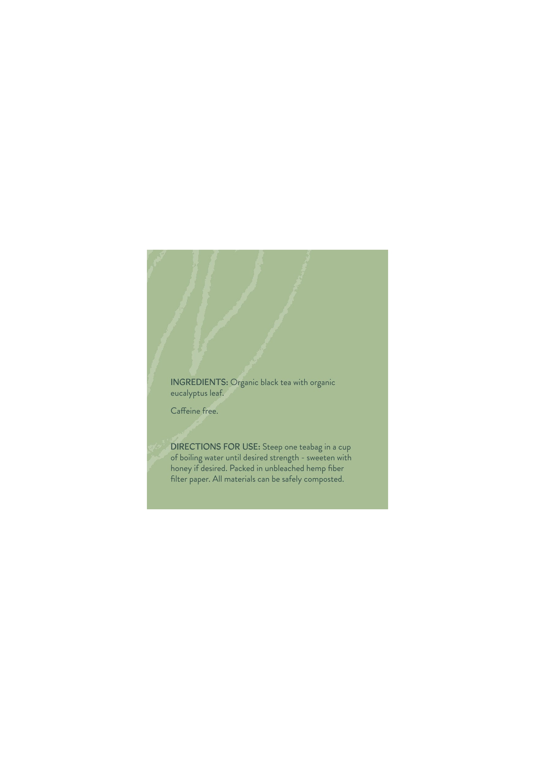 Ingredients: Organic Eucalyptus, Organic Black Tea