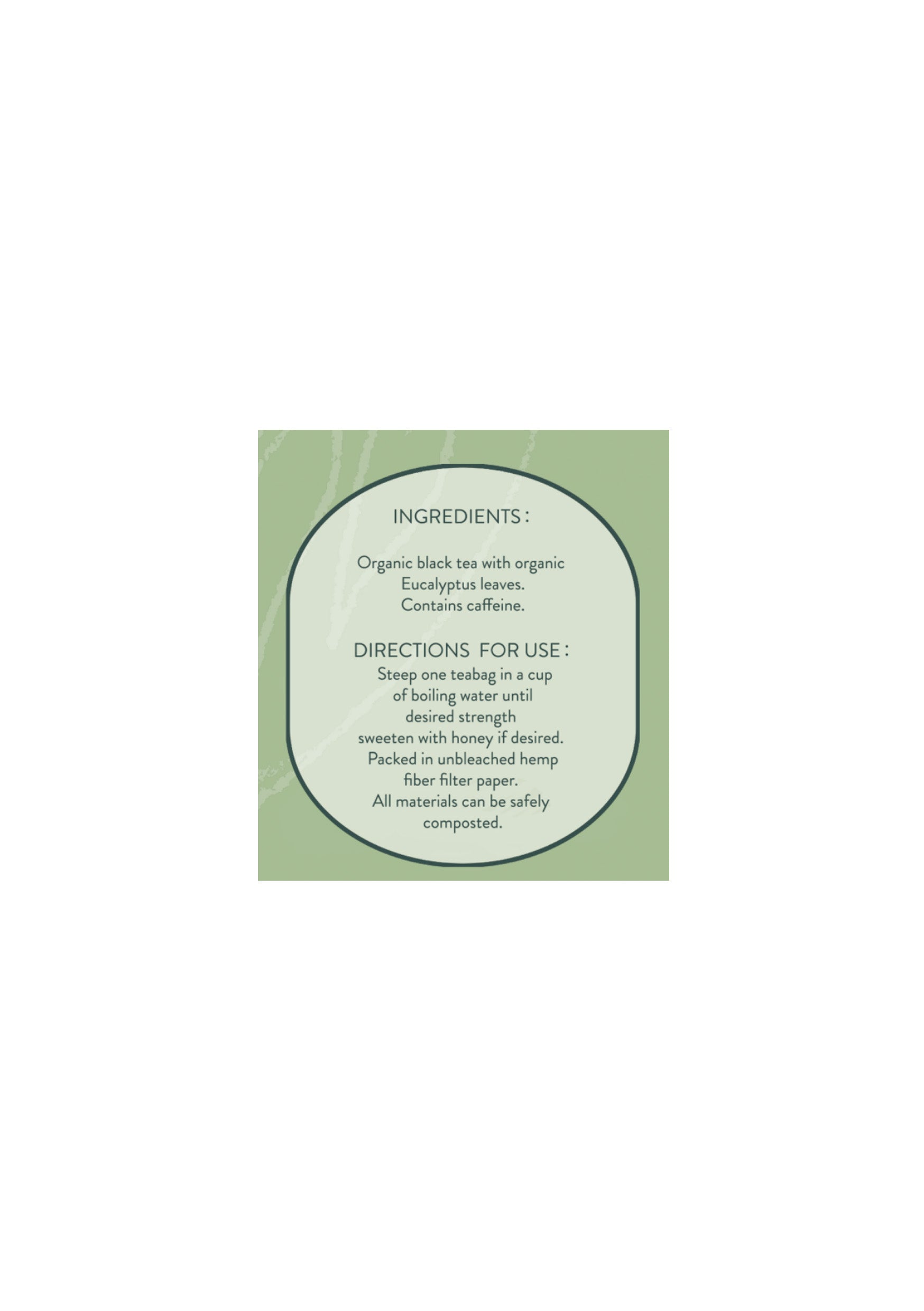 Ingredients: Organic Eucalyptus, Organic Black Tea