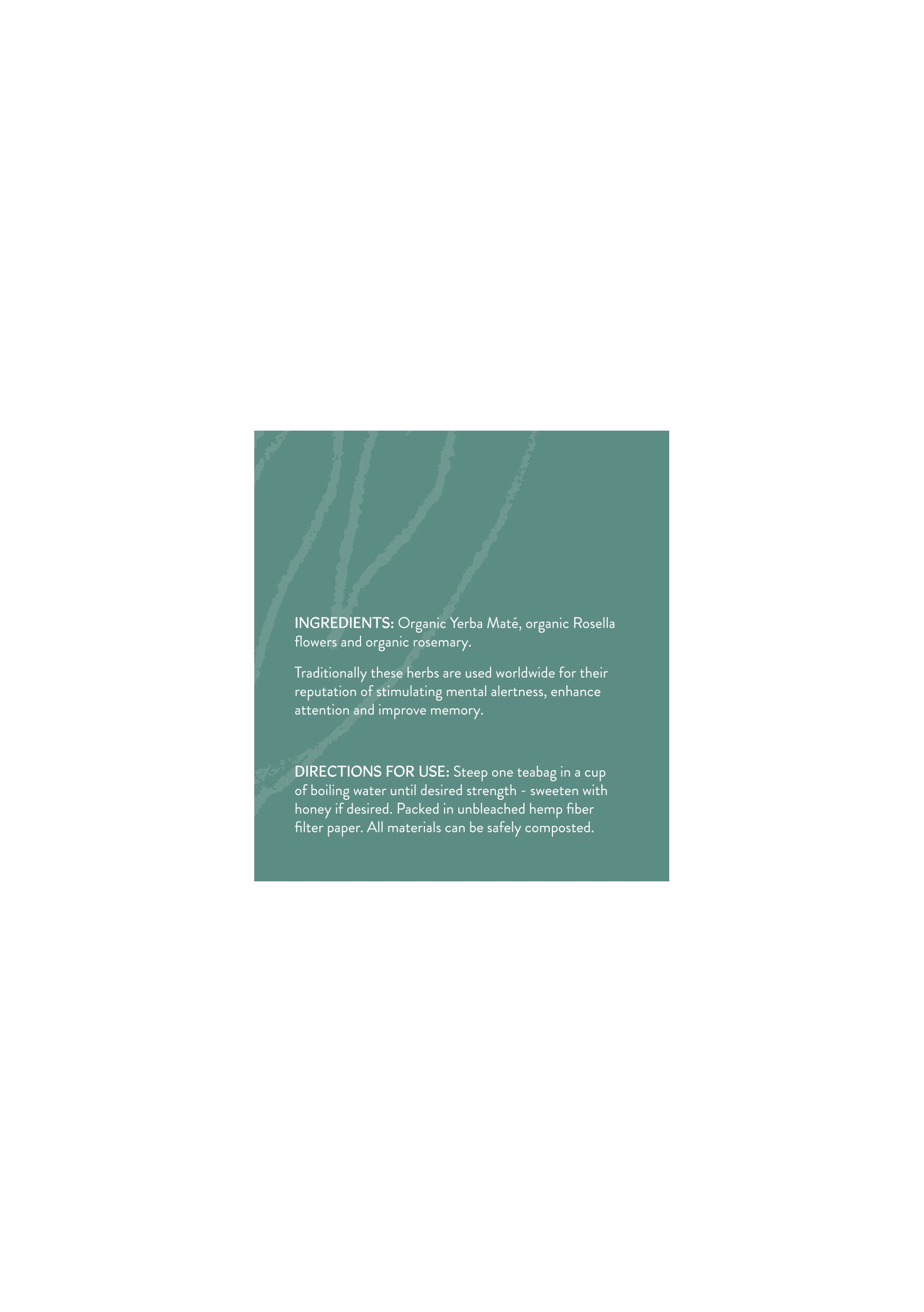 Ingredients: Organic Yerba Mate, Organic Hibiscus, Organic Rosemary