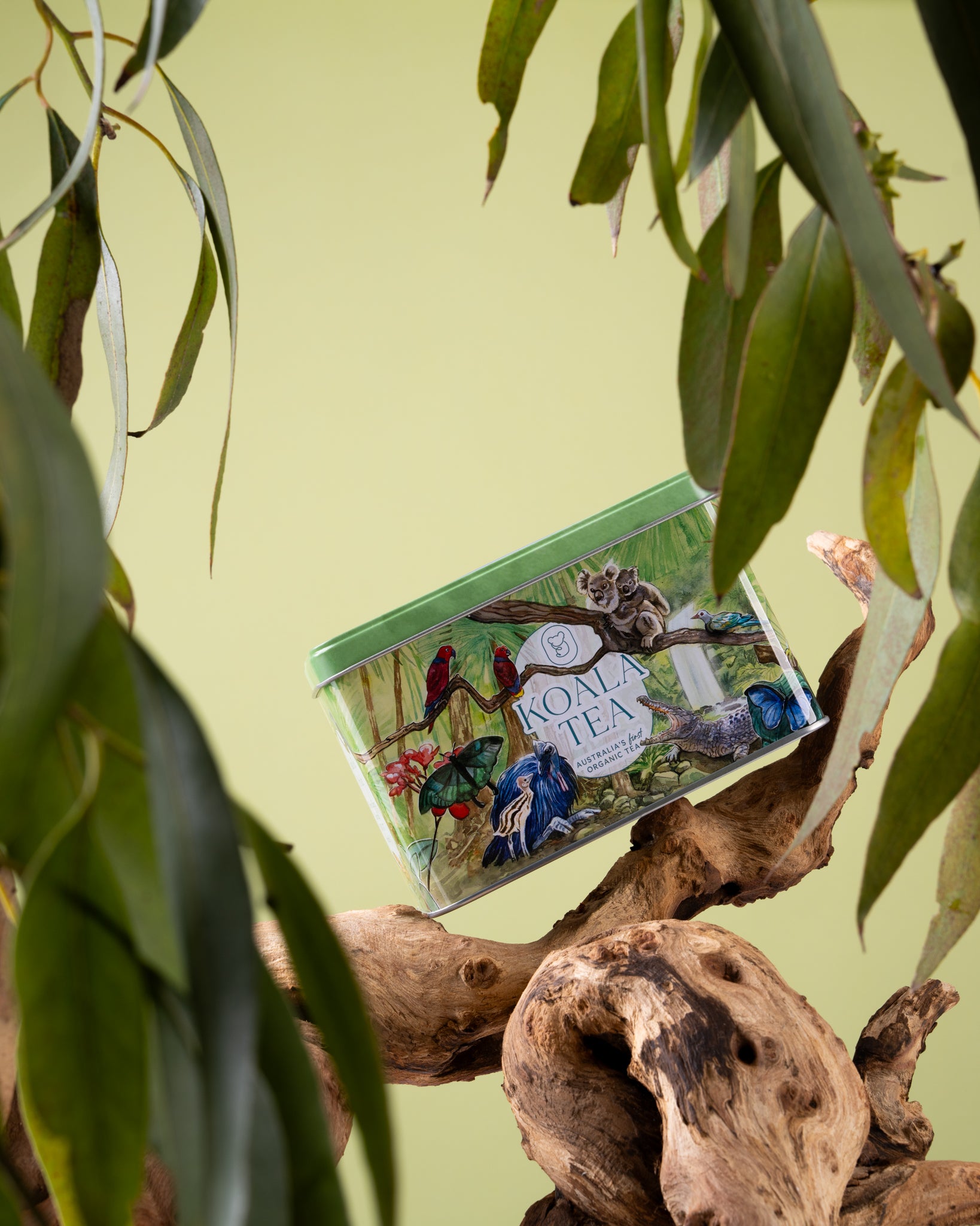 Discover the perfect blend of taste and art with Koala Tea Gift Tins. Each tin features original artwork inspired by the natural beauty of Australia, making it a stunning keepsake as well as a source of delicious, organic tea.