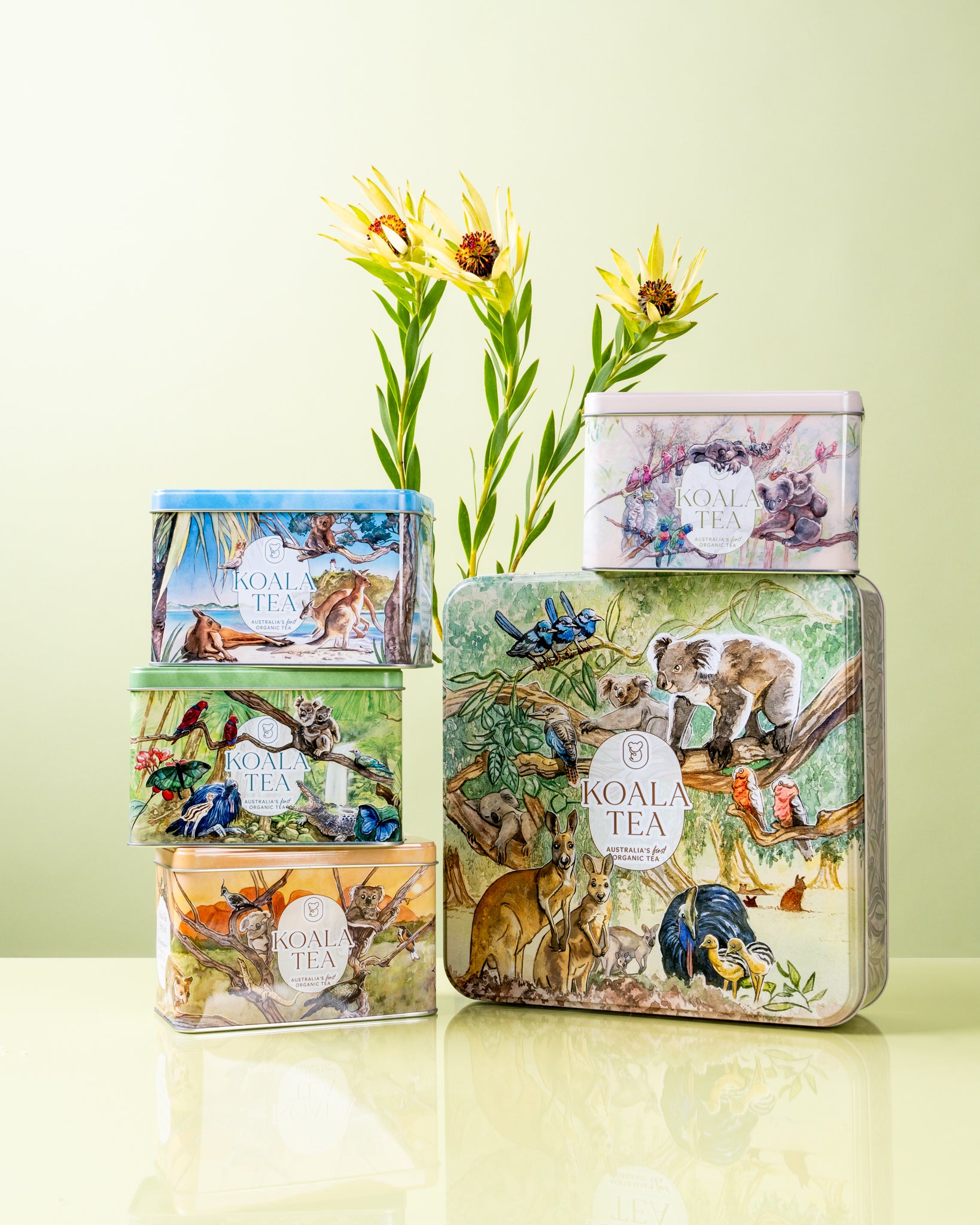 Discover the perfect blend of taste and art with The Discovery Premium Koala Tea Gift Tin. This tin features original artwork inspired by the natural beauty of Australia, making it a stunning gift and keepsake as well as a source of delicious organic tea.